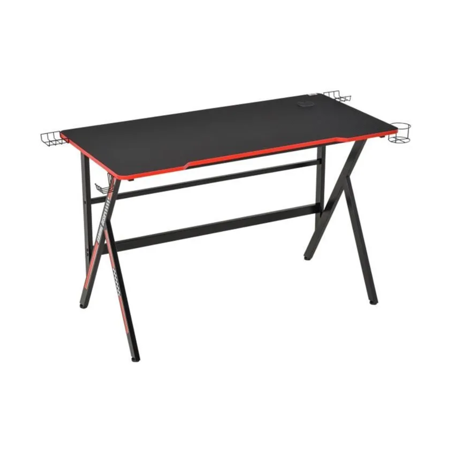 Ce superbe bureau gaming racing avec élégante texture plateau en fibre de carbone et piètement doté de stickers à damiers et bandes rouge blanc ajoutera une touche de modernité supplémentaire à votre intérieur. Multi-rangements, doté de brackets enceintes, d’un support casque, d’un porte-gobelet, d’un passe-fils, ce bureau très fonctionnel sera très pratique à utiliser au quotidien pour jouer et travailler.